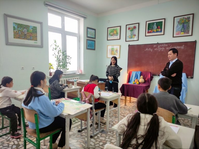 Өзбекстан мәмлекетлик филармониясы Бас директоры А.Тожибаев басшылығындағы жумысшы топар ағзалары Нөкис қаласындағы 12-санлы балалар музыка ҳәм көркем өнер мектеби турмысы…